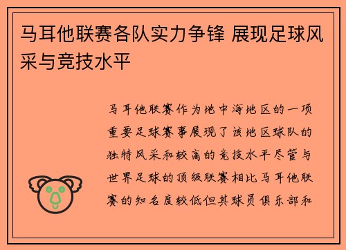 马耳他联赛作为地中海地区的一项重要足球赛事,展现了该地区球队的独特风采和较高的竞技水平。尽管与世界足球的顶级联赛相比,马耳他联赛的知名度较低,但其球员、俱乐部和比赛氛围依然吸引着大量足球爱好者的关注。本文将深入探讨马耳他联赛中各队的实力争锋,重点分析四个方面:俱乐部之间的竞争格局、球员水平与发展、战术体系与风格、以及联赛整体的吸引力和影响力。通过对这些方面的探讨,可以更好地理解马耳他联赛在地区足球文化中的地位,以及如何展现其独特的足球风采与竞技水平。